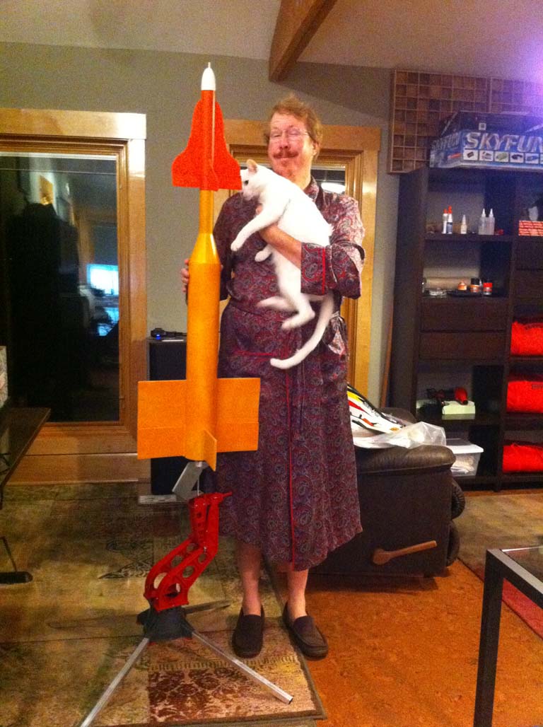 My rocket is very big. And here I am posing with it, with one of my wife's cats. No, I don't know why.