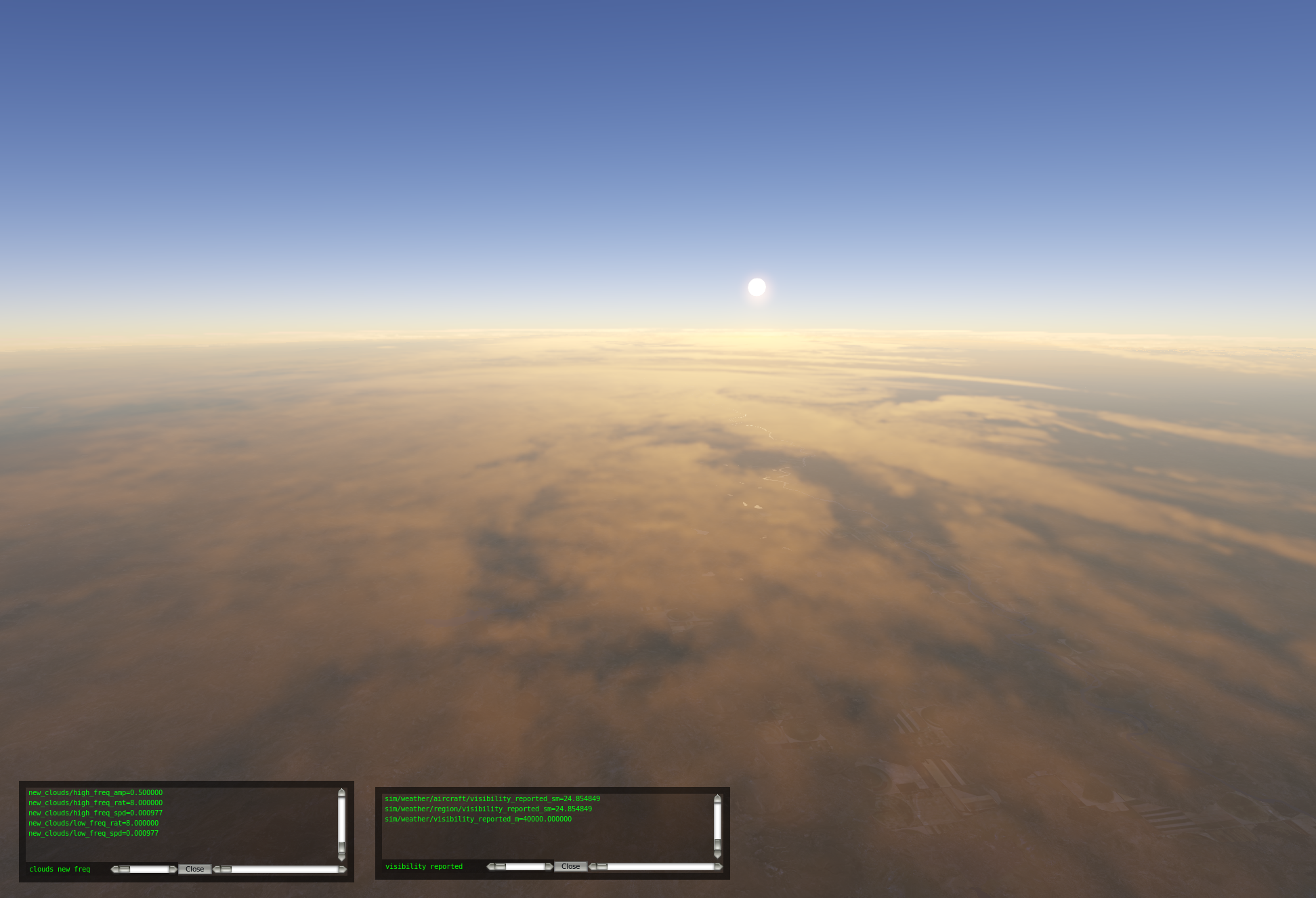 You’ll be seeing atmospheric improvements (more accurate scattering). These are all based on mathematical calculations to create a more realistic lighting environment within X-Plane.