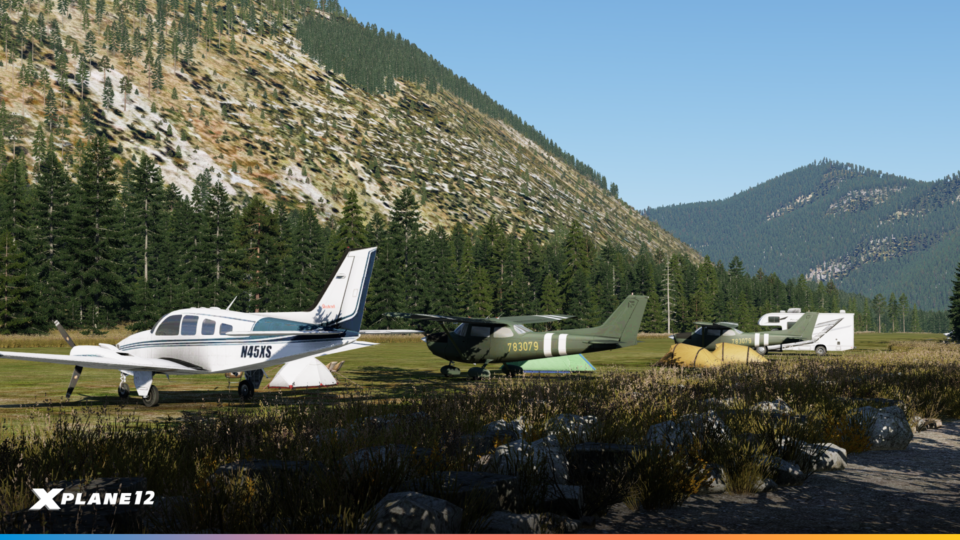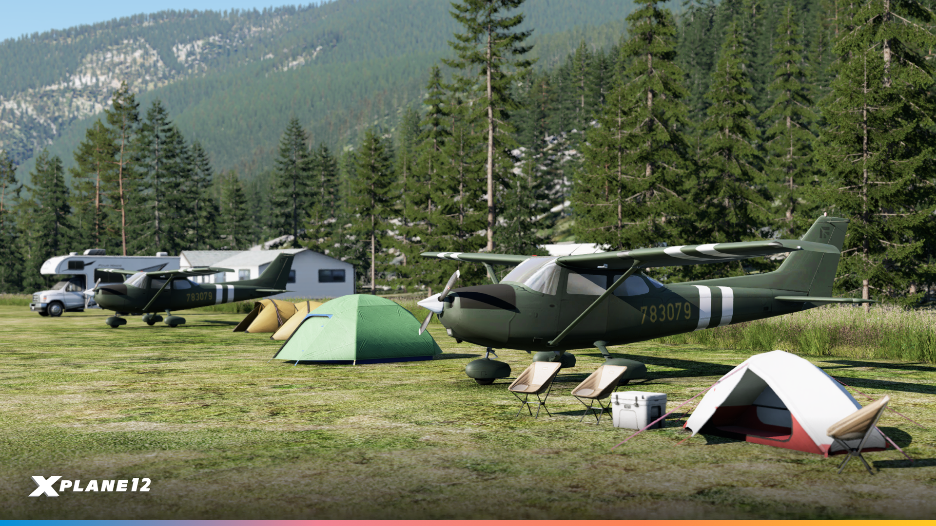 General aviation is about more than just flying – it’s about the fly-in camping trips and weekend adventures. This collection of RVs, tents, and camping equipment lets scenery designers capture the spirit of grassroots aviation at fly-in destinations and backcountry strips.