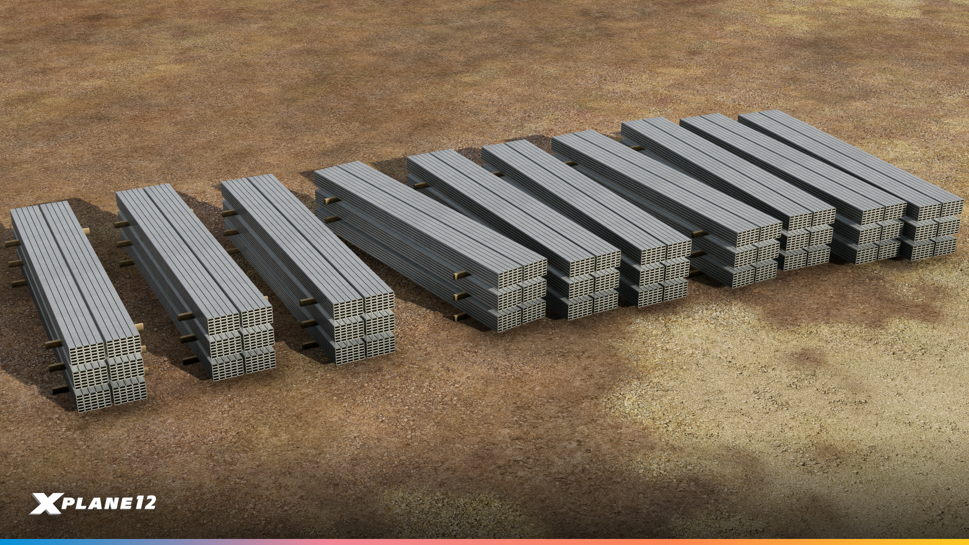 You may remember that we added construction vehicles in 12.2.1, however many people asked us for more construction materials and ground clutter to bring building sites to life.