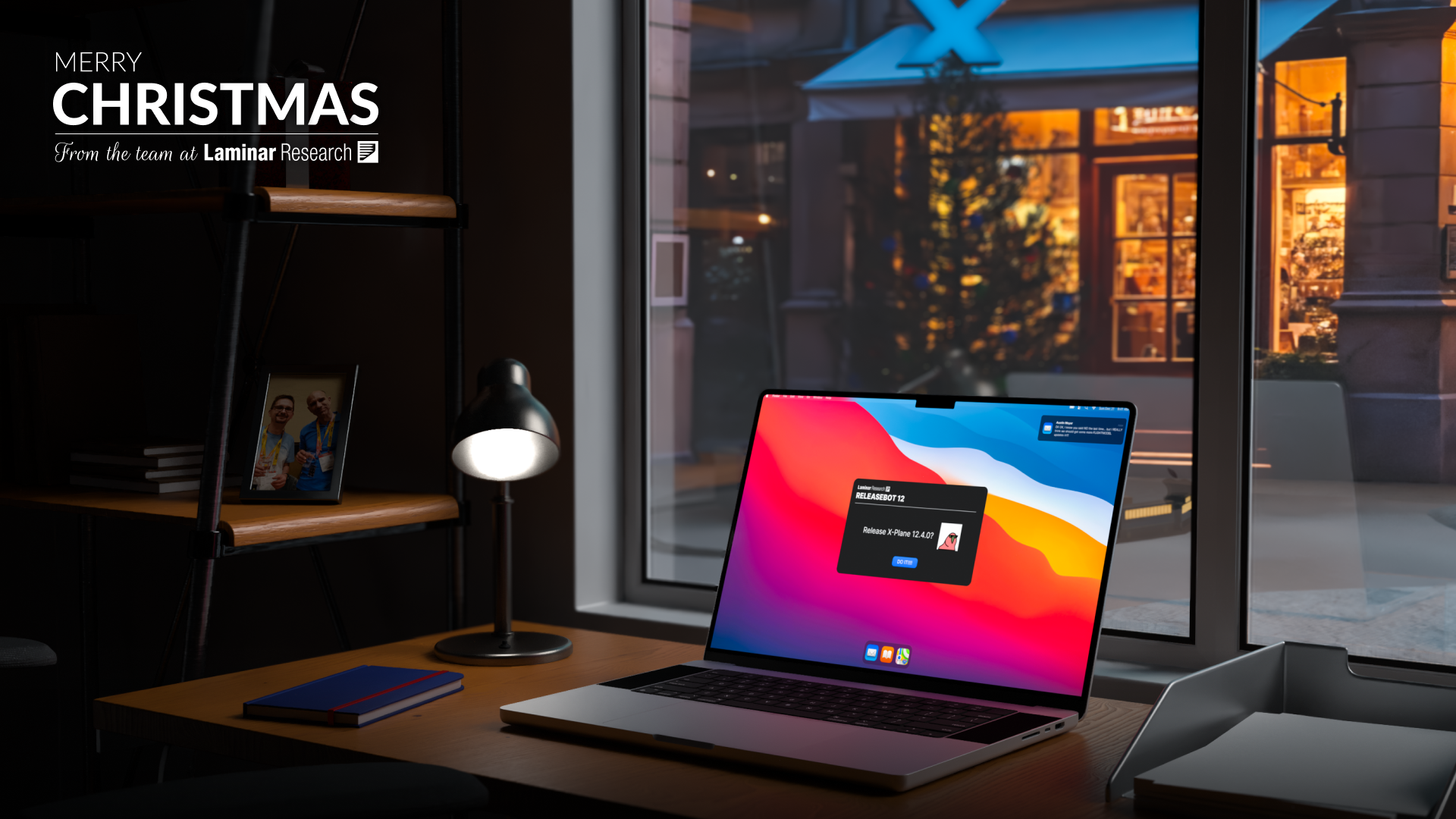 When Marco would send out X-Plane 12.4.0.The Laminar hangar was glowing with holiday light,
