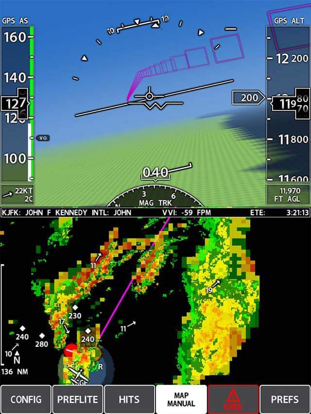 Xavion is an App that runs on your iPhone-4, iPhone-5, iPadMini, or iPad to display a synthetic image of the world while flying, with overlays for speed, heading, and altitude, thus allowing a pilot to continue to fly his airplane safely in night or instrument conditions after complete electrical or instrument failure in the cockpit.